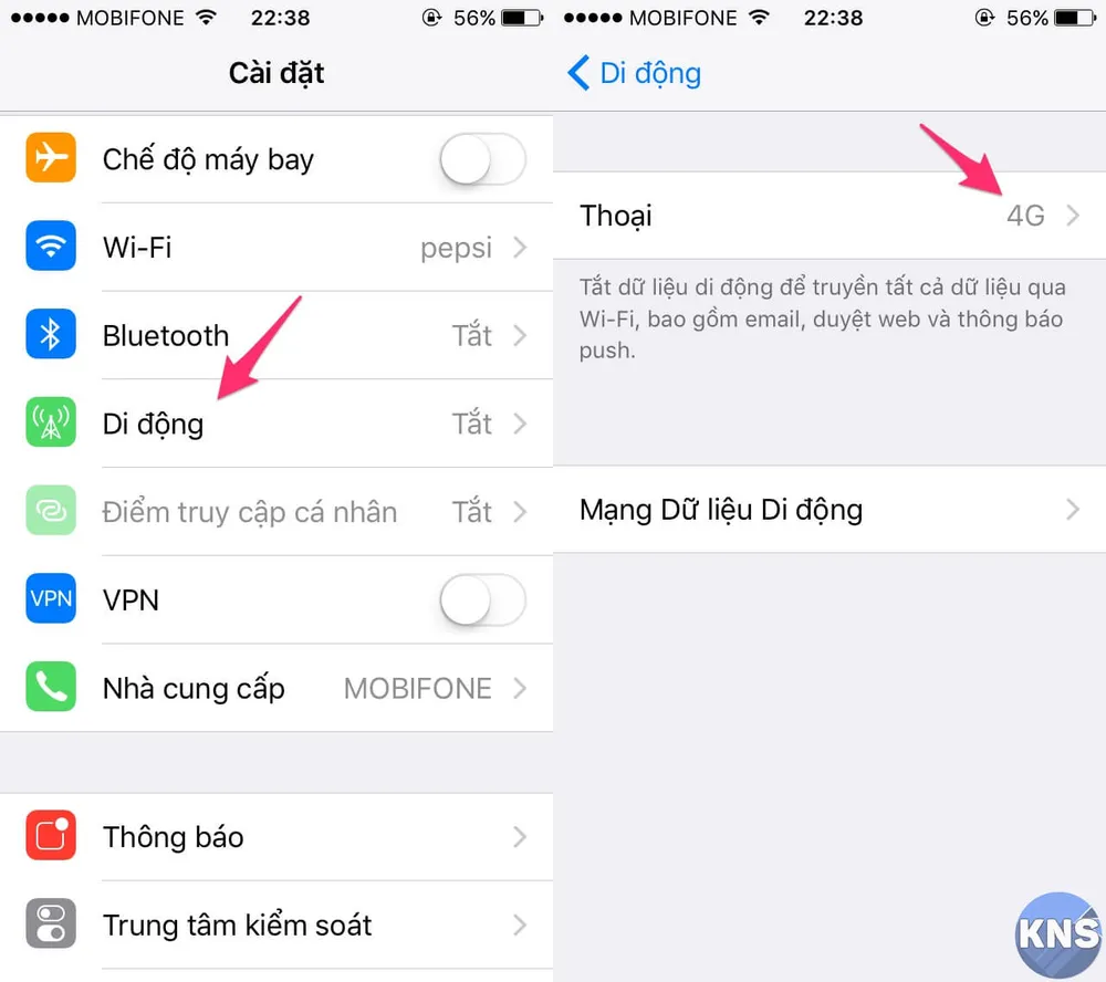 Đối với các thiết bị iOS, bạn hãy vào Settings (cài đặt) > Cellular (di động) > Cellular Data Options (tùy chọn dữ liệu di động) > Voice (thoại) > 4G. Lưu ý: Nếu điện thoại không hỗ trợ 4G, có lẽ bạn cần phải đổi thiết bị khác.