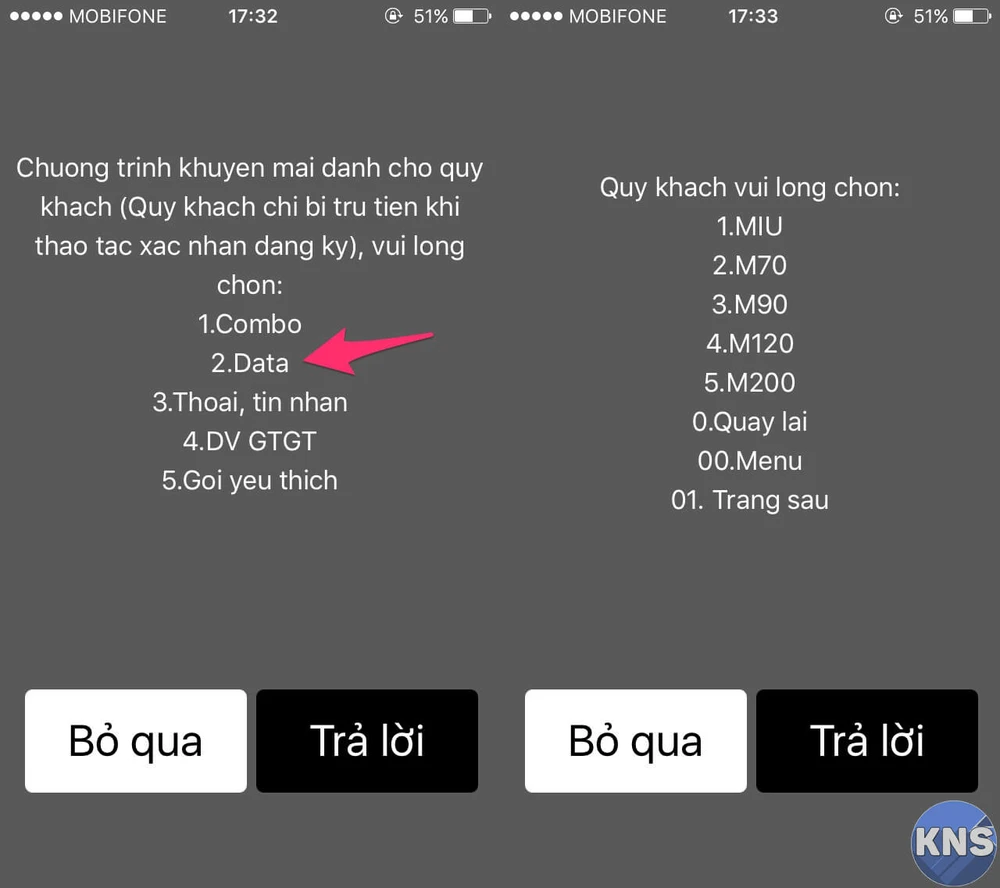 - MobiFone: Đầu tiên, bạn hãy mở ứng dụng quay số và nhấn gọi *090#, sau đó lựa chọn mục Data và các gói dữ liệu tương ứng theo ngày, tuần và tháng. Phía nhà mạng MobiFone không ghi rõ chi tiết dung lượng các gói và thời hạn sử dụng, do đó người dùng cần phải tham khảo thêm thông tin trên Internet.
