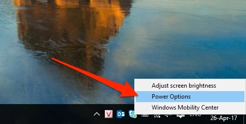 - Laptop: bạn nhấn phải chuột vào biểu tượng viên pin ở góc phải bên dưới màn hình và chọn Power Options.