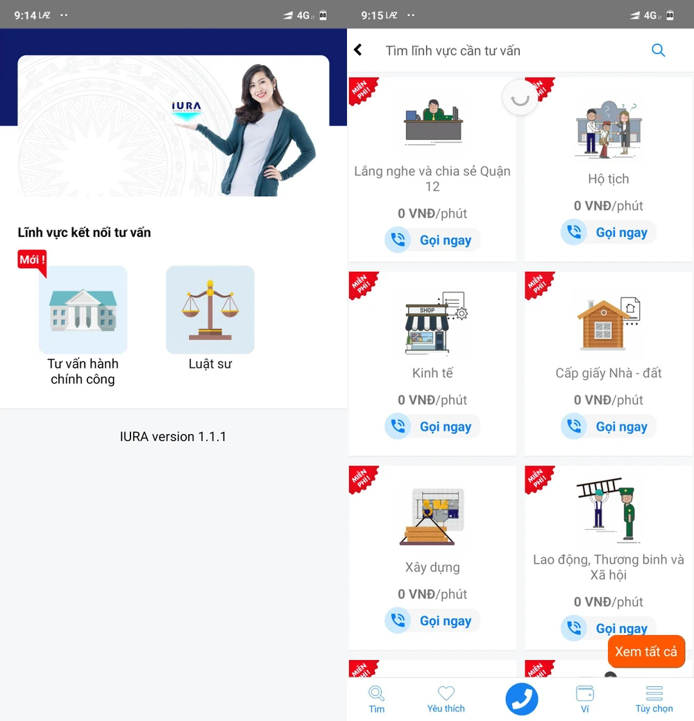 Giao diện của IURA khá đơn giản chỉ với hai mục chính gồm Tư vấn hành chính công và Luật sư. Trong khuôn khổ bài viết này, chúng ta chỉ cần quan tâm đến mục Tư vấn hành chính công, các tính năng khác người dùng có thể tìm hiểu thêm trong quá trình sử dụng.
