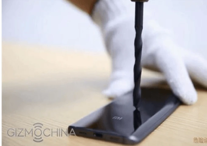 Để chứng minh độ chắc chắn của sản phẩm, công ty đã thử tra tấn chiếc Mi 5 Pro với mũi khoan, tuy nhiên thiết bị vẫn không hề bị trầy xước.