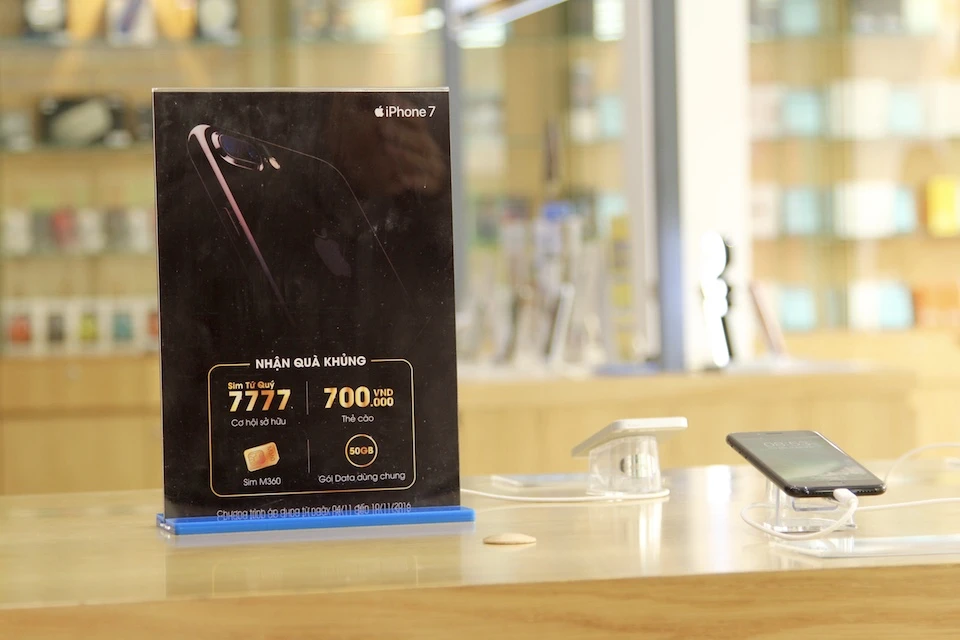 Cụ thể, khi mua iPhone 7 và 7 Plus, bạn sẽ được sở hữu ngay thẻ cào trị giá 700.000 đồng, ưu đãi cước và cơ hội nhận SIM tứ quý.