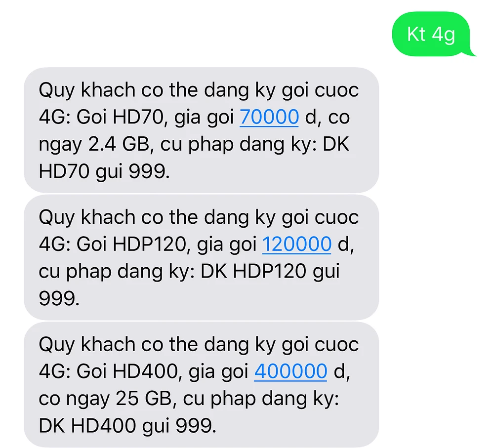 Nếu đang sử dụng mạng MobiFone, bạn hãy mở ứng dụng điện thoại và gọi *090#, sau đó lựa chọn mục data và các gói dữ liệu tương ứng theo ngày, tuần và tháng. Phía nhà mạng MobiFone không ghi rõ chi tiết dung lượng các gói và thời hạn sử dụng, do đó người dùng cần phải tham khảo thêm thông tin trên Internet. Nếu sử dụng nhiều, bạn có thể đăng ký gói HD70 với giá 70.000 đồng (soạn tin nhắn HD70 gửi 999) để được 2,4 GB dữ liệu, sử dụng trong vòng 30 ngày.