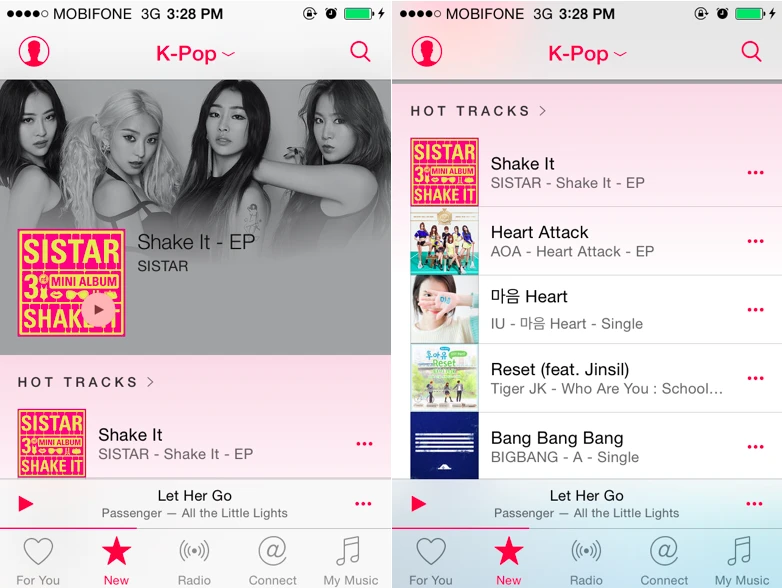 Apple Music cũng cung cấp những bài hát mới nhất theo tất cả các thể loại âm nhạc hiện nay (All genres) ở thẻ New. Nếu chỉ cần bài hát ở thể loại yêu thích, bạn nhấn vào nút mũi tên sổ xuống ở phần All genres và chọn trong danh sách. Ngay lập tức các nội dung trong thẻ này sẽ tự động thay đổi theo sự lựa chọn của bạn.