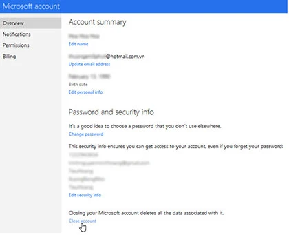 Lưu ý rằng khi bạn đóng tài khoản thì tên người dùng, mật khẩu, thông tin cá nhân…sẽ bị xóa bỏ vĩnh viễn. Do đó bạn sẽ không thể nào sử dụng tài khoản này cho các dịch vụ của Microsoft hay truy cập vào danh bạ của Hotmail được nữa. Để xóa tài khoản Outlook.com thì bạn thực hiện như sau: