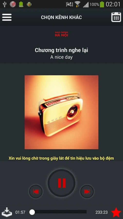 Khi nghe một kênh radio bất kì, nếu bạn muốn tải về nội dung của chuyên mục đó thì chỉ cần chạm vào biểu tượng Download, nó sẽ tự động tải về thẻ nhớ để bạn có thể nghe bất cứ lúc nào, kể cả khi thiết bị không được kết nối mạng.