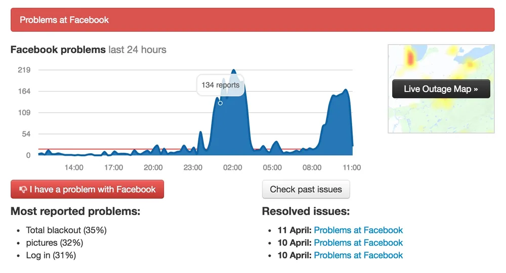 Khi kiểm tra tình trạng Facebook tại trang web http://downdetector.com, có khá nhiều người dùng báo cáo về sự cố tương tự như không thể đăng status, không cập nhật được nội dung hoặc chia sẻ liên kết… Lưu ý, tình trạng này chỉ xảy ra trên máy tính, không ảnh hưởng khi bạn đang sử dụng Facebook bằng smartphone.