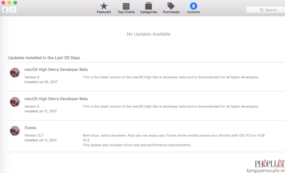 Nếu đang sử dụng MacBook, bạn cũng cần thực hiện việc nâng cấp bằng cách mở App Store, chuyển sang thẻ Updates (cập nhật), chờ một lát để máy tính tìm kiếm bản vá. Khi hoàn tất, người dùng chỉ cần cập nhật lên phiên bản macOS Sierra 10.12.6.