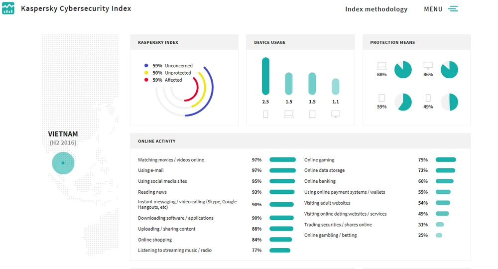 Chỉ số này dựa trên một cuộc khảo sát trực tuyến của người dùng Internet trên khắp thế giới, thực hiện bởi Kaspersky hai lần một năm. Trong nửa sau năm 2016 đã thu được 17,377 phản hồi từ 28 đất nước.