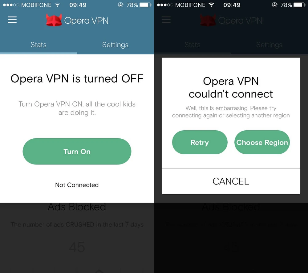 Thậm chí đến cả việc bật VPN cũng không thể thực hiện được, sóng di động cũng chỉ còn khoảng một nửa so với bình thường, 3G chập chờn...