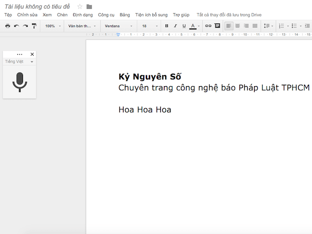 Tính năng Voice typing chỉ mới hỗ trợ Google Docs. Ảnh: TM