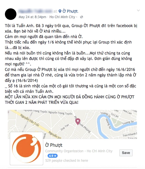 Cũng gặp tình trạng tương tự như Otofun, group Ờ! Phượt Đi (nơi chia sẻ các trải nghiệm về những chuyến du lịch) cũng đã bị khóa hơn một tuần nay. Anh Nguyễn Tuấn Anh cho biết nếu đến ngày 1-6 không thể khôi phục thì xác định là… group đã bị xóa. Nguyên nhân chính đến nay vẫn chưa được tiết lộ.