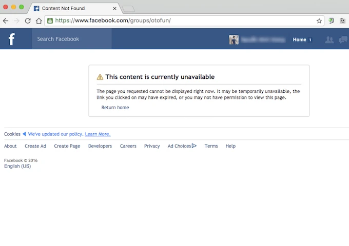 Khi người viết thử tìm kiếm trên Facebook thì chỉ thấy xuất hiện thông tin nội dung này hiện tại không có sẵn.