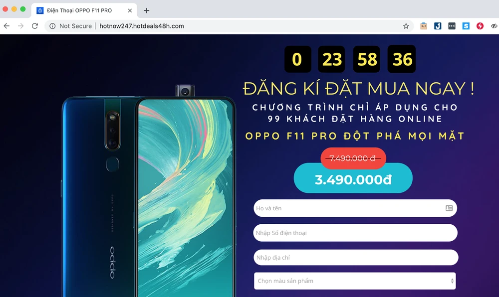 Dạo gần đây trên mạng liên tục xuất hiện các trang web rao bán điện thoại với mức giá rẻ không tưởng, để mua được, bạn cần phải nhập đầy đủ các thông tin cá nhân như họ tên, số điện thoại, địa chỉ, màu sản phẩm…