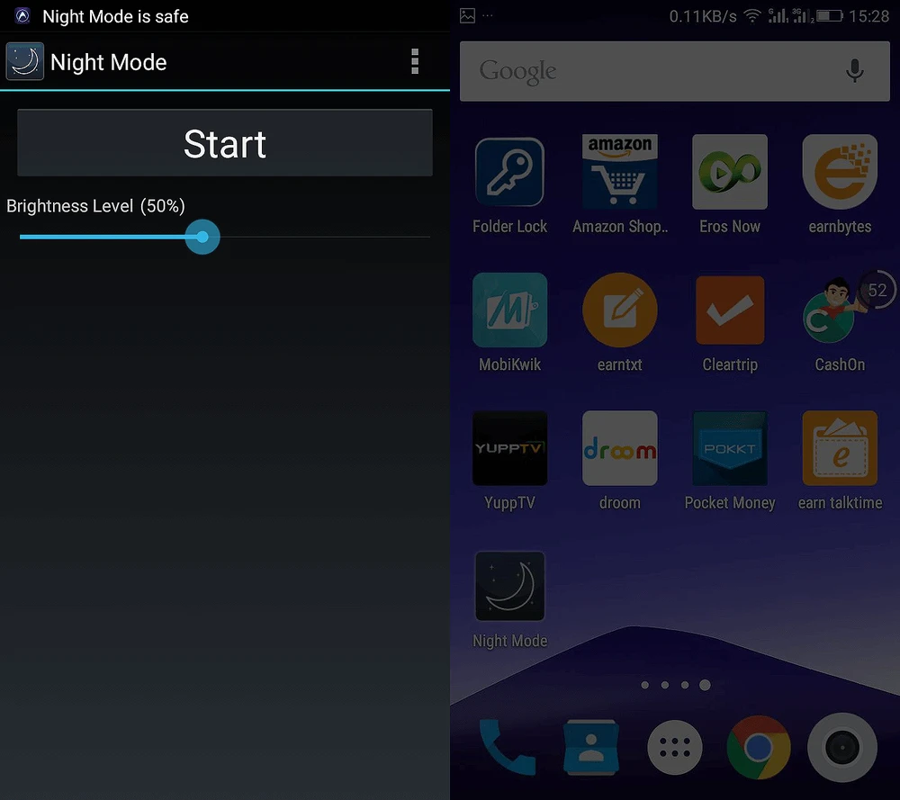 - Smartphone: Đa số smartphone Android hiện nay đều đã có chế độ ban đêm, giúp mắt đỡ căng thẳng khi sử dụng. Tuy nhiên, nếu đang sử dụng điện thoại đời cũ, bạn có thể cài đặt phần mềm Night Mode tại địa chỉ http://bit.ly/night-mode. Ứng dụng sẽ đóng vai trò như một lớp phủ để màn hình đỡ chói và đảm bảo cho đôi mắt không bị tổn thương.