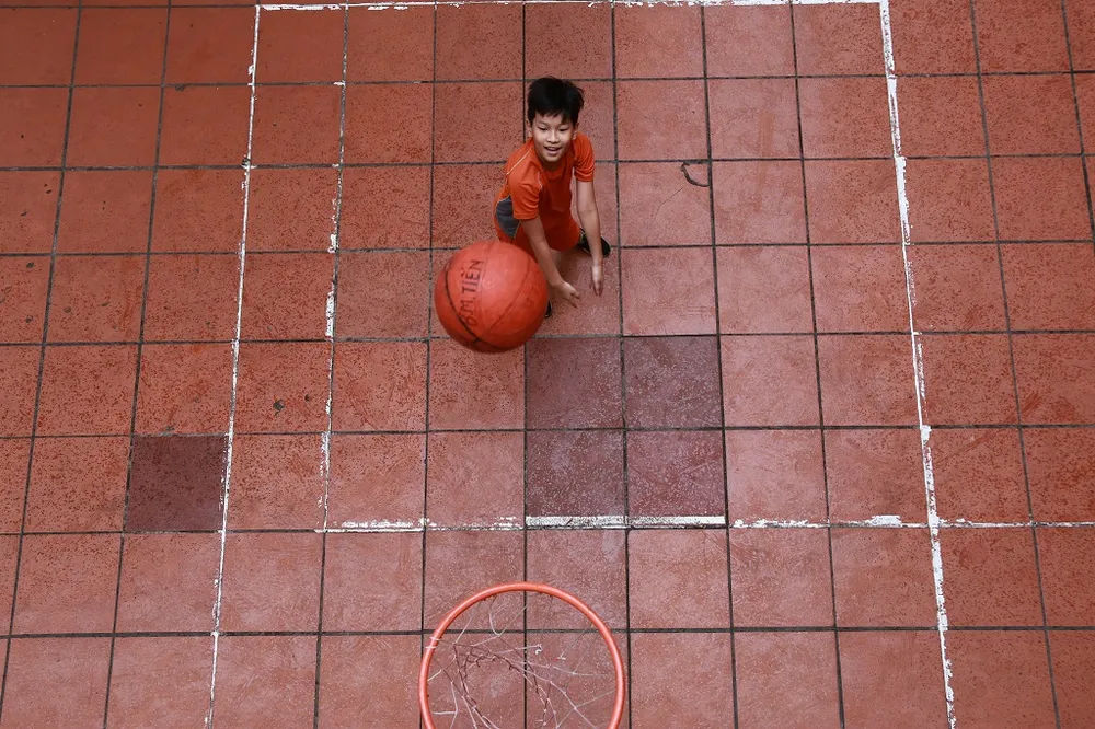 Thí sinh Quách Đình Hiếu chia sẻ niềm vui của mình: “Nghĩ về nụ cười, tôi nghĩ đến chủ thể phải là trẻ con và chỉ có trẻ con. Hoạt động, nụ cười hồn nhiên, trong sáng, chân thật của trẻ sẽ tạo nên một bức ảnh tự nhiên. May mắn thay, hôm nay Chủ nhật nhưng Trường Tiểu học Tràng An vẫn có các lớp học ngoại khóa. Tôi chọn bố cục trung tâm là đặt lỗ bóng rổ ở giữa, nằm ở cuối bức ảnh để lấy nụ cười của em bé từ trên cao. Phải chụp khoảng 50-60 bức mới chọn được bức ảnh gửi dự thi này”.
