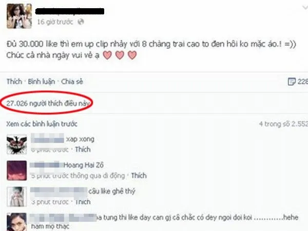 Chiêu trò câu like bằng những status sock hoặc nặng mùi sex của chủ nhân status đó.