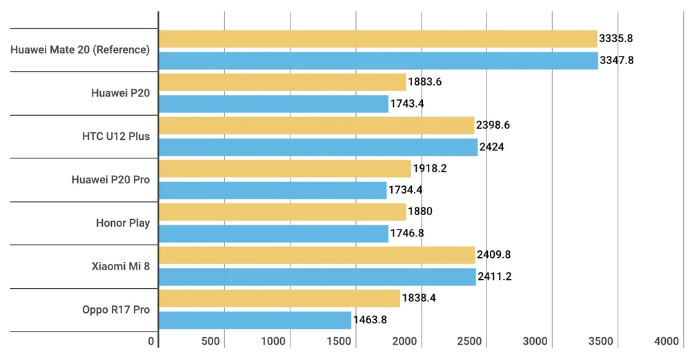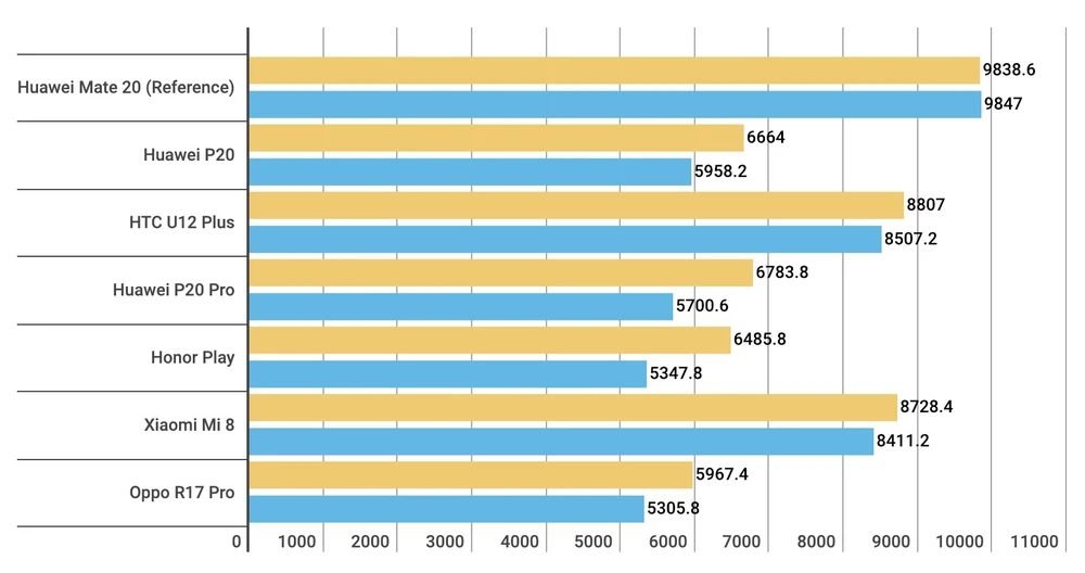 Tương tự, trong bài kiểm tra đa nhân, sự chênh lệch chỉ khoảng 3%, nhưng Huawei P20 và Honor Play lại nâng khống điểm số lên khoảng 21%. Trong danh sách này, HTC U12 Plus, Xiaomi Mi 8 và Huawei Mate 20 là ba mẫu điện thoại có điểm số thực tế gần giống với điểm số được công bố.