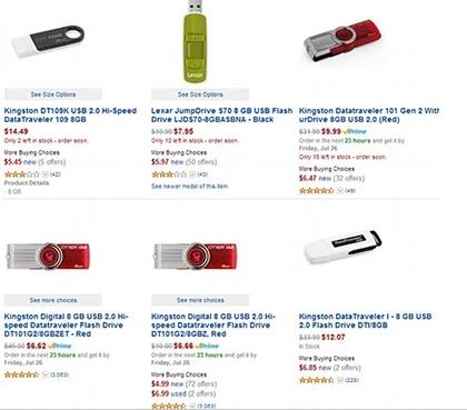 Cả 3 sản phẩm kể trên đều có mức dung lượng lưu trữ là 8GB, tuy nhiên Kingston DataTraveler Micro cho phép người dùng lựa chọn các mức khác cao hơn là 16/32/64GB.