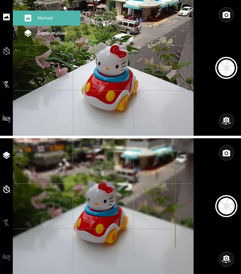 Cách sử dụng khá đơn giản và thân thiện, người dùng khởi động chức năng chụp hình, chọn chế độ Đã bật chiều sâu để chuyển qua chức năng chụp hình xóa phông. Bên phải của màn hình sẽ xuất hiện một thanh trượt khẩu độ dao động từ f/0.8 đến f/5.6 và chỉ cần kéo lên để làm mờ và kéo xuống để rõ nét rồi bấm chụp là có thể tạo ra một tấm hình có hiệu ứng xóa phông bắt mắt. Lưu ý: khi kéo thanh trượt làm mờ phải chú ý đến chủ thể hình ảnh vì kéo quá mức sẽ làm mờ luôn những phần rìa của chủ thể.