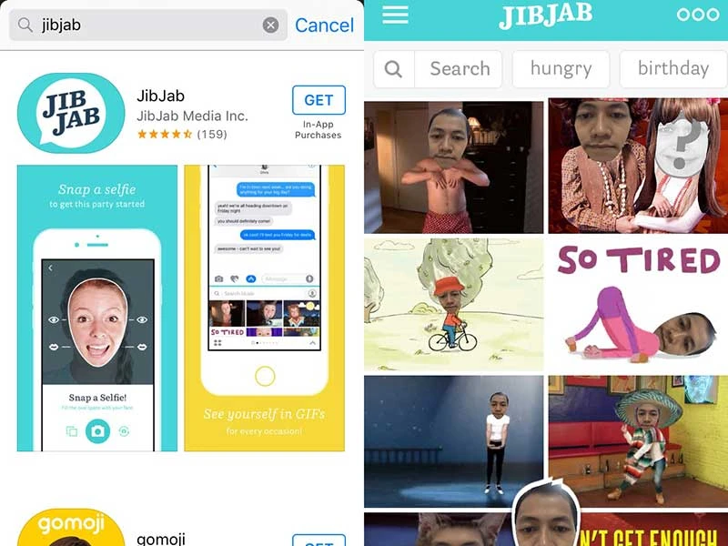 Thay vì gửi tin nhắn bằng văn bản, bạn có thể sử dụng các biểu tượng cảm xúc (emoji) để biến cuộc trò chuyện trở nên sinh động hơn. Tuy nhiên, nếu thấy các biểu tượng có sẵn chưa đầy đủ, bạn có thể cài đặt thêm tiện ích bổ sung của bên thứ ba bằng cách mở iMessage, chạm vào biểu tượng App Store > Store và nhập vào từ khóa JibJab. Khi hoàn tất, bạn hãy mở tiện ích JibJab bên trong iMessage và chụp lại khuôn mặt của mình, sau đó canh chỉnh vùng mắt và miệng sao cho phù hợp với các mẫu có sẵn. JibJab sẽ tự động ghép khuôn mặt của bạn vào các bức ảnh động vui nhộn có sẵn, người dùng có thể bấm vào để xem trước, tải về máy hoặc chia sẻ với bạn bè chỉ với vài thao tác đơn giản.