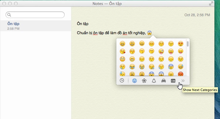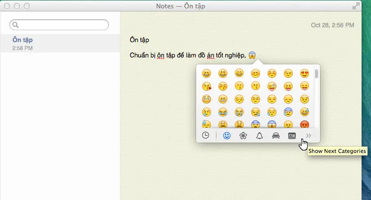 Mavericks đã thêm vào một loạt các biểu tượng cảm xúc, cho phép bạn thay thế các văn bản cần nhập nhanh hơn. Để kích hoạt tính năng này, bạn nhấn tổ hợp phím Control + Command + Space (phím Command là nút tương tự như phím Windows, và Space là phím cách).