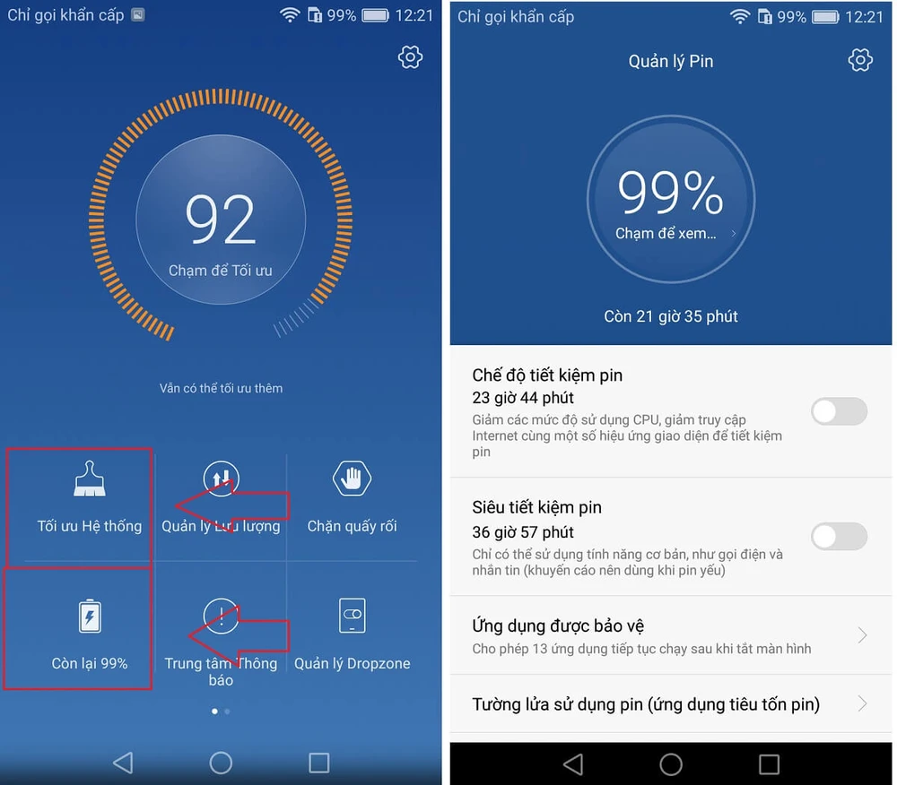 Chính vì vậy, các nhà sản xuất thường tích hợp sẵn tiện ích Quản lý điện thoại với vài tính năng hữu ích như “Tối ưu hệ thống” và “Quản lý pin”. Theo đó, bạn dễ dàng kiểm soát, quản lý mọi ứng dụng đã cài đặt và đang chạy ngầm nhằm tối ưu hệ thống máy.