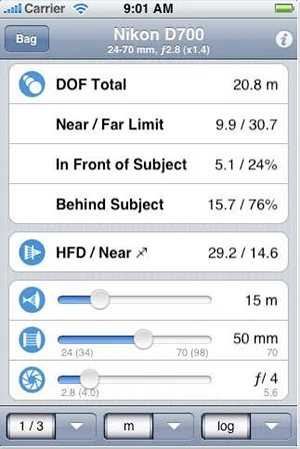 Ứng dụng này giúp bạn tính toán độ sâu trường ảnh và khoảng cách từ ống kính đến tiêu điểm. Tất cả các giá trị và thông số được hiển thị trên màn hình đơn để dễ dàng truy cập vào tất cả thông tin kỹ thuật bạn cần.