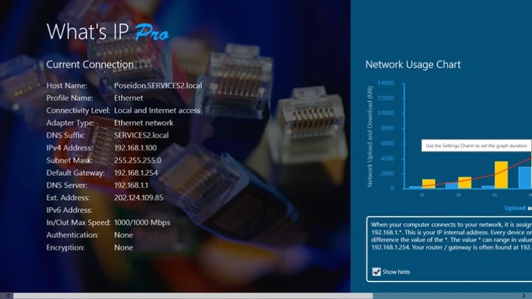 Nếu muốn tìm hiểu thêm những thông tin trong mạng nội bộ, nhưng bạn lại không rành về các lệnh trong command prompt thì phải làm thế nào? What's IP Pro (http://goo.gl/aVc3Mi) là một bộ công cụ giám sát mạng hữu ích, cho phép xem toàn bộ những thiết bị đang kết nối vào mạng của bạn. Bên cạnh đó, nó còn cung cấp các thông tin như DNS lookup, kiểm tra các port và hiển thị lưu lượng sử dụng dưới dạng đồ thị.