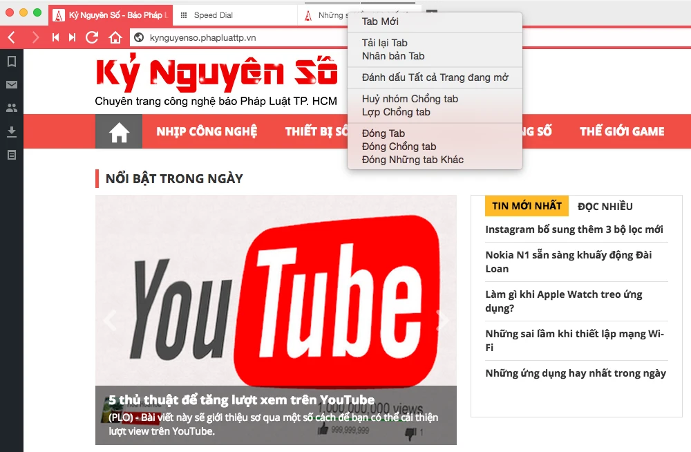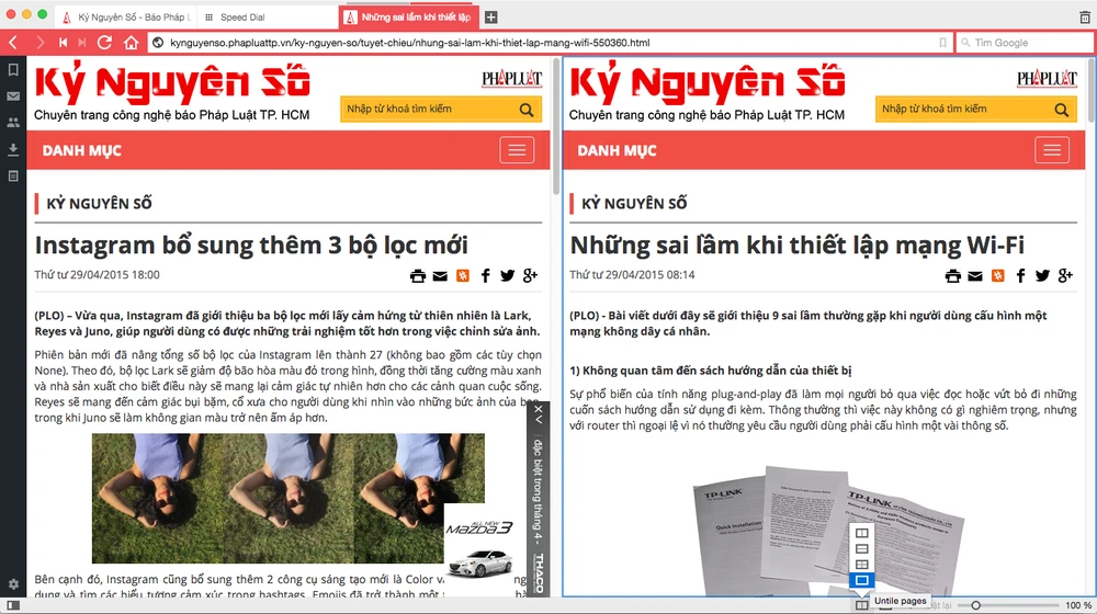 Hơn thế nữa, người dùng còn có thể theo dõi nhiều bài viết trên cùng một cửa sổ thông qua biểu tượng ô vuông nằm ở thanh trạng thái bên dưới, có rất nhiều tùy chọn để bạn sử dụng như chia đôi màn hình ngang/dọc hoặc chia làm bốn cửa sổ nhỏ. Tính năng này tỏ ra khá hiệu quả khi bạn làm việc trên một màn hình rộng. Cuối cùng là tính năng Page action (nhấn vào biểu tượng “<>” nằm ở cuối trang), cho phép người dùng sử dụng các bộ lọc để tùy biến mọi thứ trên trang web.