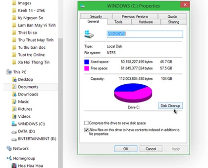 Để làm được việc này, bạn truy cập vào My Computer, nhấn phải chuột vào ổ hệ thống (thường là ổ C:\) và chọn Properties. Nhấn vào Disk Cleanup và chờ một lát để nó tiến hành phân tích nhằm lấy lại không gian cho ổ cứng.
