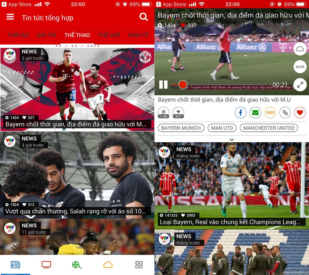 Phần Tin tức sẽ bao gồm các thông tin mới nhất, nóng nhất về các sự kiện thể thao đặc sắc đang diễn ra. Bên cạnh đó còn có nhiều bài phân tích chuyên sâu về phong độ của từng cầu thủ, lối chơi và chiến thuật… Để xem trực tiếp World Cup 2018, bạn hãy chuyển sang thẻ Trực tuyến (biểu tượng màn hình màu đỏ ở bên dưới), sau đó nhấp vào nút chuyển kênh và chọn VTV6 hoặc VTV3 (tùy vào trận đấu sẽ diễn ra hôm đó). Nếu muốn ứng dụng nhắc nhở khi gần đến giờ bắt đầu, bạn chỉ cần trượt từ phải sang trái và chọn Có để xác nhận lại.