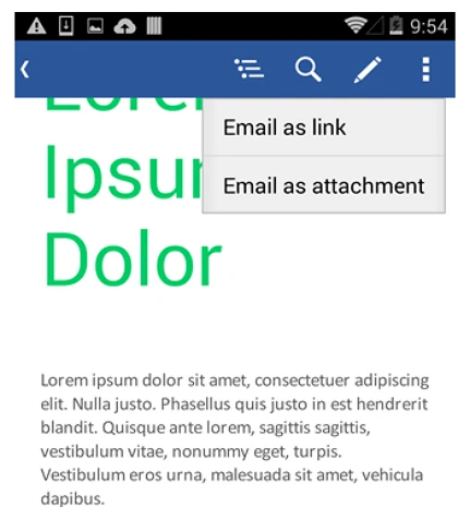 Ngoài hỗ trợ Dropbox, bản cập nhật cũng cho phép chia sẻ các liên kết đến các tài liệu trong OneDrive và tài khoản OneDrive dành cho doanh nghiệp. Để chia sẻ một liên kết, bạn chỉ cần mở một tài liệu, trong menu ngữ cảnh, chọn Share, và sau đó chọn Email as link.