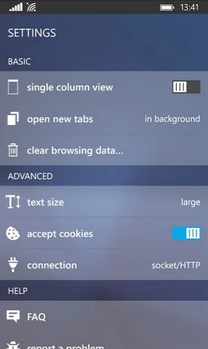 Opera Mini được tích hợp tính năng duyệt wed theo thẻ (tad) giúp cho người dùng có thể chuyển đổi qua lại ngữa các trang wed nhanh hơn. Ngoài ra, tính năng Speed Dial cho phép người dùng có thể thiết lập tất cả các trang wed ưa thích ra màn hình chủ của trình duyệt. Opera Mini có dung lượng rất nhẹ, chỉ có 3MB, bạn có thể tải về miễn phí từ Windows Store.