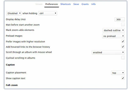 Imagus có nhiều lựa chọn để phóng to hình và những tác vụ có thể làm với từng hình. Bạn có thể yêu cầu nó tải trước hình ảnh lớn hơn của tất cả các hình trên trang, thêm liên kết tới hình ảnh lớn trong lịch sử lướt web của trình duyệt, hình ảnh lớn sẽ hiện ở vị trí nào so với con trỏ chuột… Có rất nhiều phím tắt để lưu hình ảnh, ghi chú của hình ảnh, thậm chí xoay hình để bạn nhìn rõ hơn.