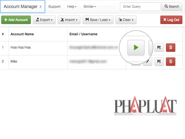 - Bước 4: Để chuyển đổi qua lại giữa các tài khoản, người dùng chỉ cần kích vào biểu tượng nút Play.
