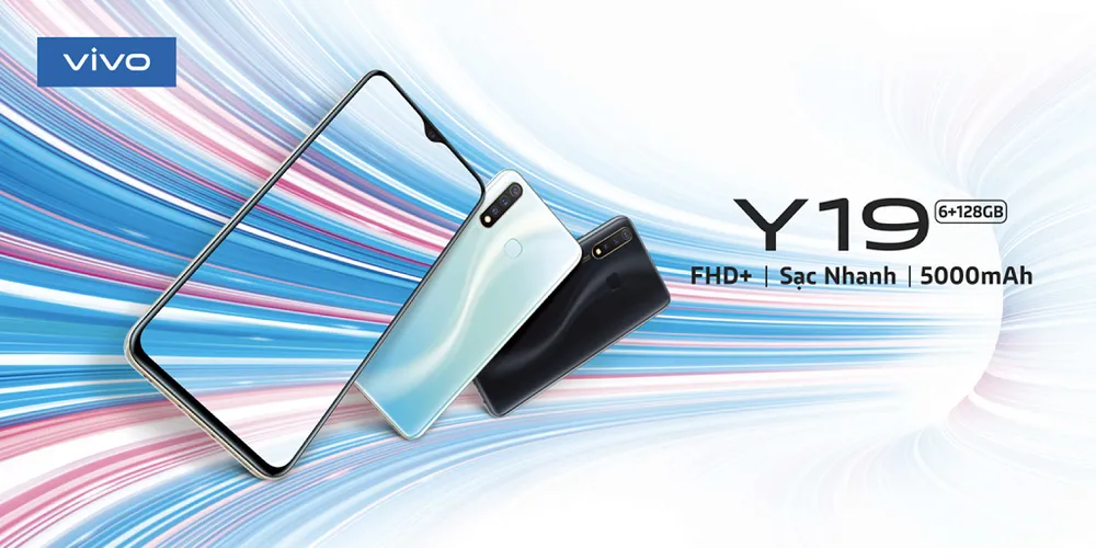 Vivo Y19 có hai phiên bản màu gồm đen phong vân, trắng sương mai, cùng thiết kế cong cạnh 3D dễ dàng cầm nắm, màu sắc mặt lưng độc đáo khi kết hợp được hiệu ứng chuyển vân sáng bắt mắt, phù hợp với người dùng trẻ. Dù có mức giá rẻ nhưng Y19 cũng được trang bị màn hình tràn Halo 6.53 inch FHD+ như những sản phẩm thuộc dòng cao cấp.