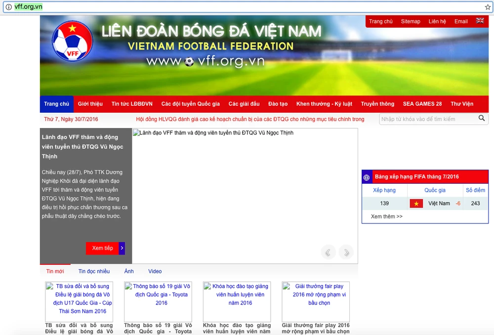 - 0 giờ 20 ngày 30-7: Trang web của VFF đã hoạt động trở lại, tuy nhiên hình ảnh vẫn chưa thể tải được đầy đủ.