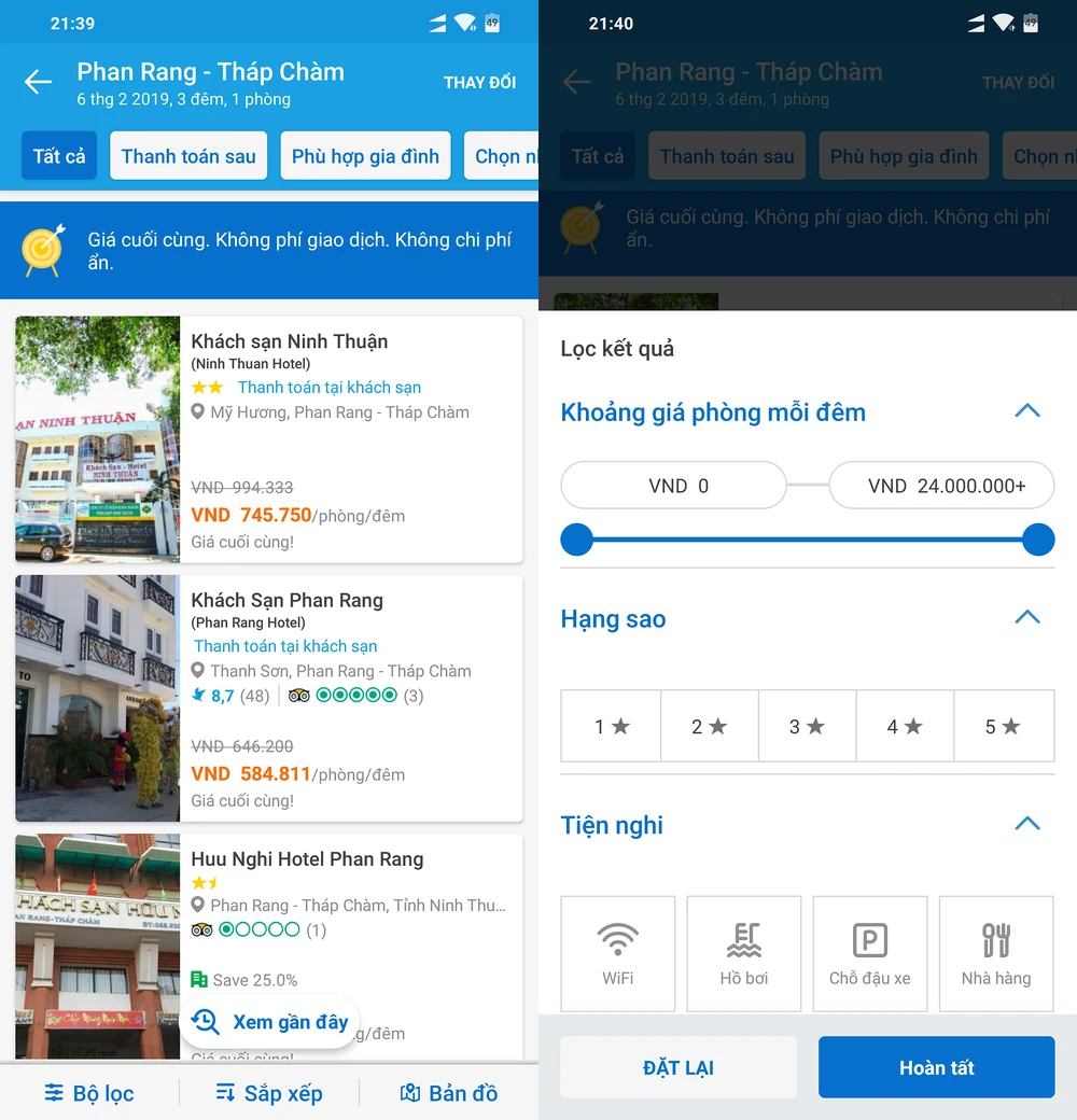Thiết lập bộ lọc để tìm được khách sạn phù hợp với nhu cầu. Ảnh: MINH HOÀNG
