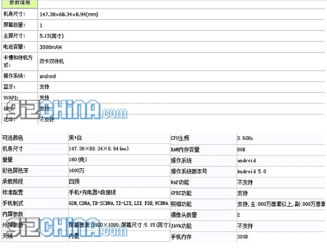 Các thông số kỹ thuật của Nubia Z9 như sau: Một bộ vi xử lý 3.5GHz để đi kèm với 8GB RAM. Camera chính 16MP cùng camera phụ 8MP, và chạy hệ điều hành Android 5.0 Lollipop khi được bán ra.Kích thước tổng thể của chiếc flagship là 147,38 x 68,34 x 8.94mm, một pin 3000mAh, trọng lượng 180g.