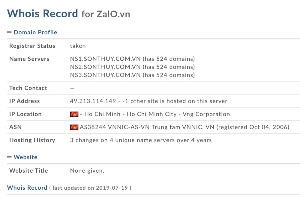 Tên miền Zalo.vn đã bị thu hồi. Ảnh: TIỂU MINH