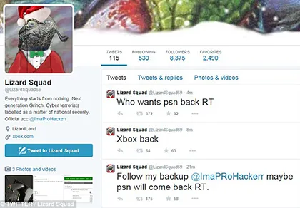 Nhóm hacker Lizard Squad đã thông báo sẽ hack mạng PlayStation Network và Xbox Live vào đầu tháng.