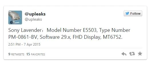 Và mới đây, tài khoản @upLeaks (một trong những nguồn cung cấp thông tin rò rỉ khá chính xác), cho biết rằng sẽ có một sản phẩm mới sẽ có tên mã là Sony Lavender với số hiệu là E5503.