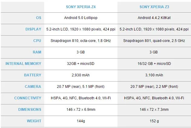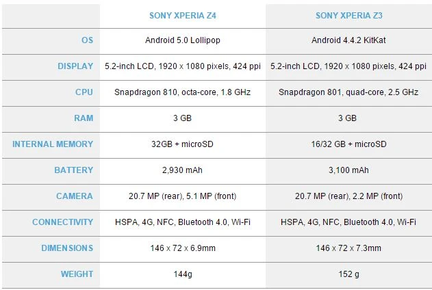 So sánh thông số cấu hình giữa chiếc Xperia Z4 và Z3 dành cho những bạn đọc chưa biết.