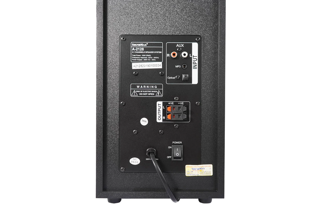 Bên cạnh ngoại hình đẹp mắt, SoundMax A-2128 còn được trang bị mức công suất lên đến 60W (RMS), có thể đáp ứng tốt dải tần từ 20-20.000 Hz, hứa hẹn đủ sức tái hiện hết những cung bậc trầm bổng của dải âm.