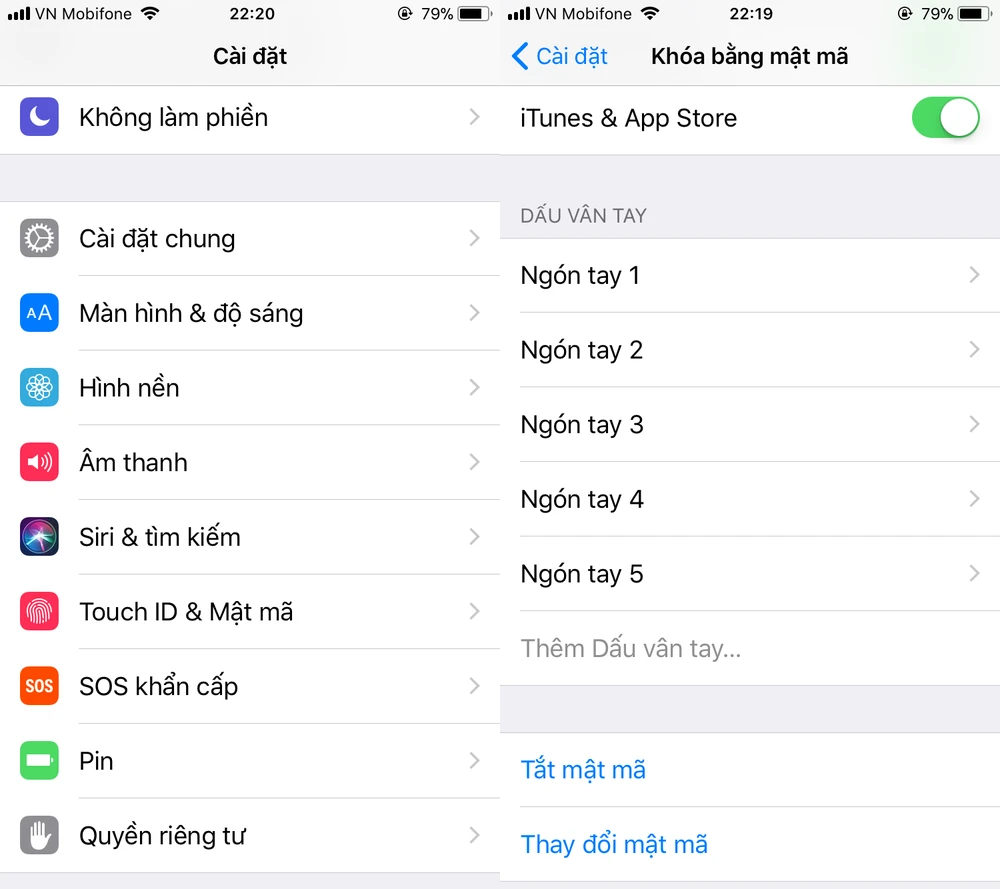 2. Cấu hình lại Touch ID