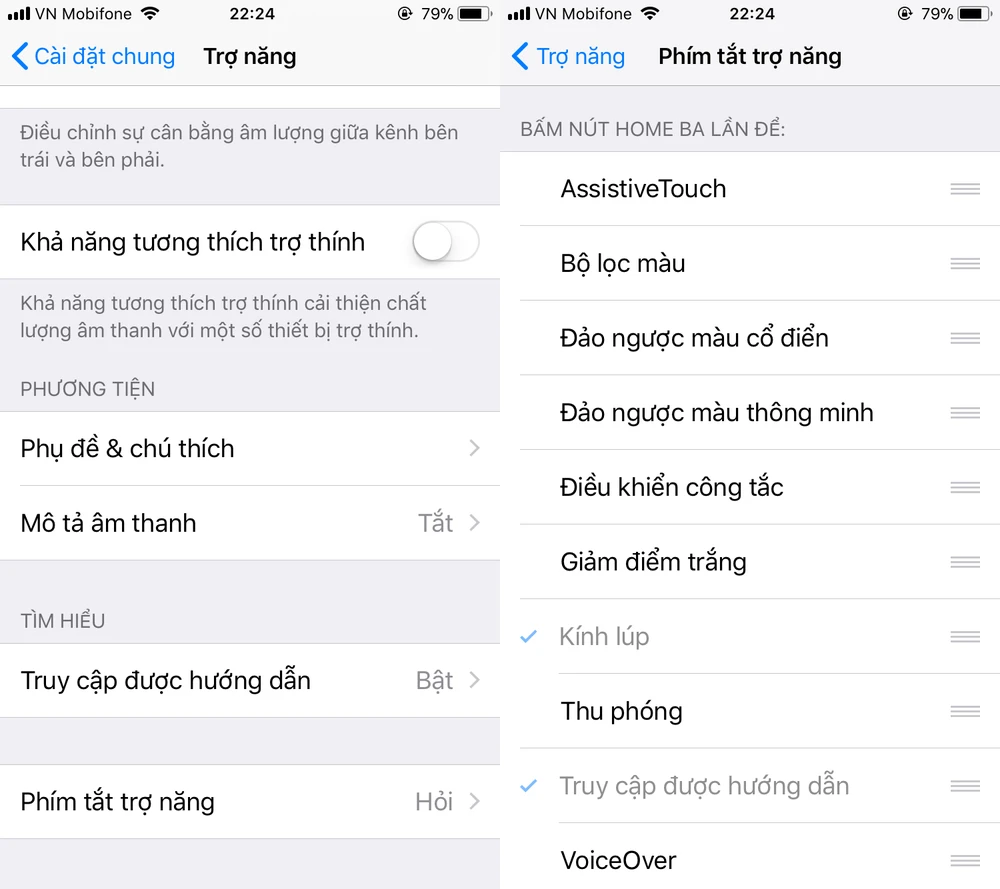 Tiếp theo, bạn hãy vào Settings (cài đặt) > General (cài đặt chung) > Accessibility (trợ năng), kéo xuống bên dưới và tìm đến mục Accessibility shortcut (phím tắt trợ năng), bỏ chọn tất cả và chỉ giữ lại mục Guided Access (truy cập được hướng dẫn).