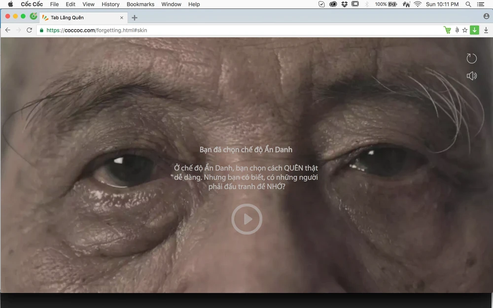 Cốc Cốc đã đổi tên Tab ẩn danh sang “Tab Lãng Quên” và giới thiệu đến những người đang sử dụng chế độ này một thông điệp vô cùng xúc động về căn bệnh Alzheimer’s, với hy vọng mang đến cho cộng đồng những hiểu biết sâu sắc hơn về một căn bệnh nghiêm trọng và dai dẳng, không những ảnh hưởng đến bản thân người bệnh mà còn đến những người chăm sóc họ. Người dùng cũng có thể tìm hiểu thêm thông tin về cănh bệnh này và cách chăm sóc người bệnh chỉ với một cú nhấp chuột đơn giản.