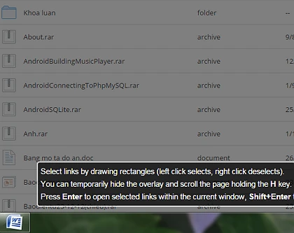 Bạn có thể vẽ một hình chữ nhật xung quanh các liên kết muốn chọn. Thao tác này sẽ tô vàng các liên kết. Từ đó bạn có thể nhấn Enter để mở liên kết trong cùng một cửa sổ, hoặc Shift - Enter để mở ra trong một cửa sổ mới, hoặc Alt - Enter để tải chúng.
