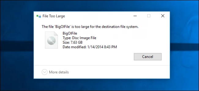 “Gần đây tôi có mua một chiếc USB 3.0 64GB, khi cắm vào máy tính, tôi bắt đầu sao chép một số tập tin vào đó để chuyển sang máy khác. Tất cả các tập tin nhỏ như MP3, tài liệu… đều sao chép tốt nhưng chỉ có một file ISO thì bị báo lỗi tập tin có dung lượng quá lớn và việc chuyển giao không thành công, trong khi USB của tôi còn rất nhiều chỗ trống? Tại sao tôi không thể chép được tập tin có dung lượng 4,5GB lên chiếc USB 64GB?”